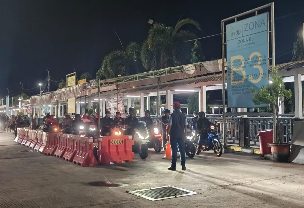 Arus mudik di Pelabuhan Lembar yang terpantau relatif sepi pada Selasa malam, 17 Maret 2026. Terlihat dari jumlah kendaraan roda dua yang tengah antre masuk kepal. (dok: ril)
