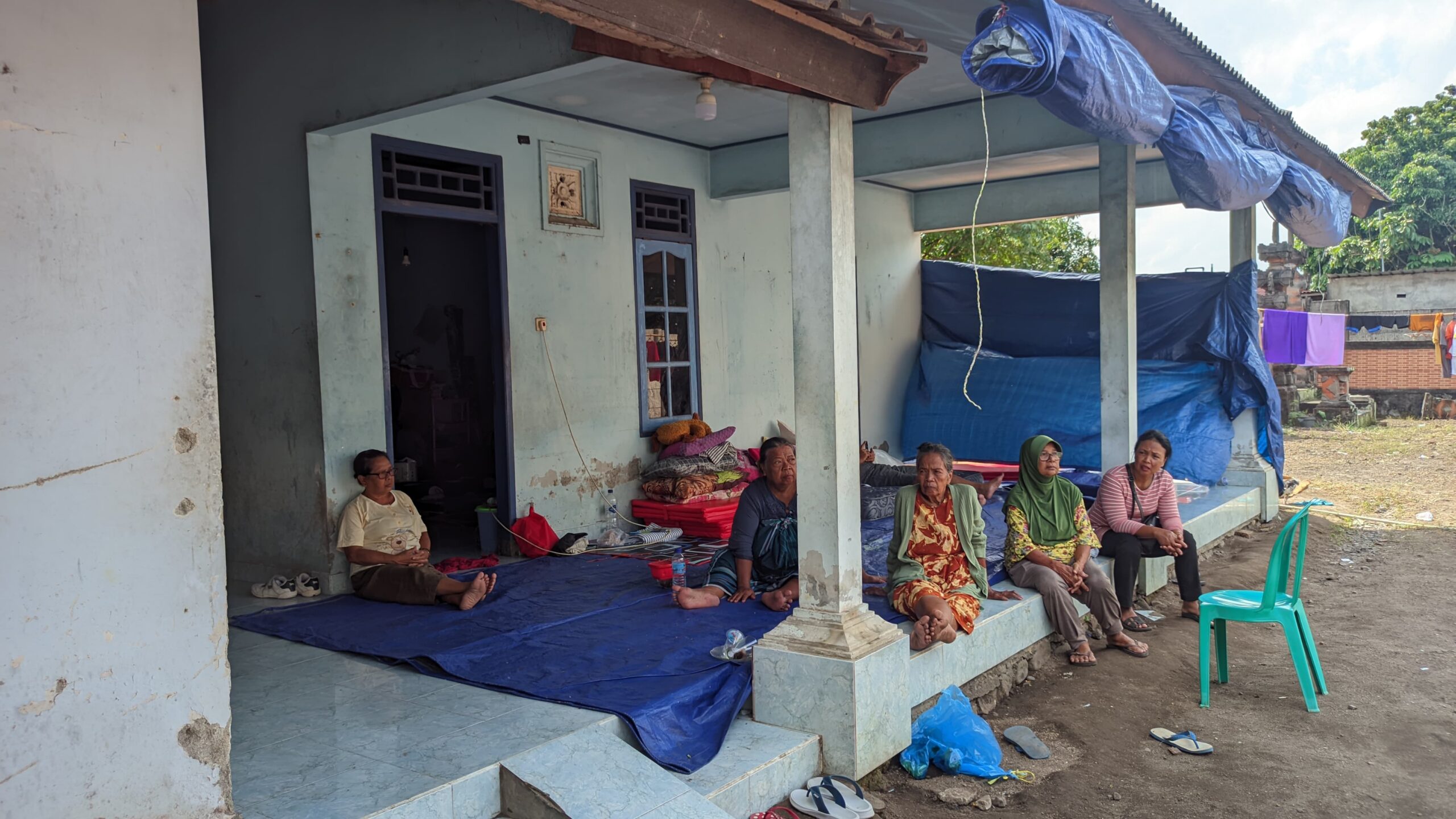Burhan Juliadi, pengungsi lainnya menceritakan bahwa ia rela tidur di luar demi memberi ruang bagi balita dan lansia di dalam ruangan.