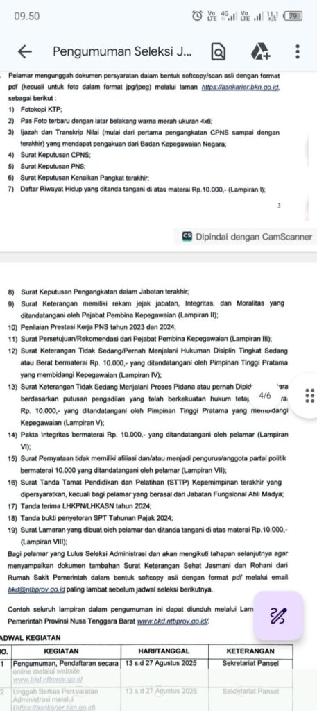 (Keterangan foto: Persyaratan Panitia Seleksi (Pansel) Pejabat Tinggi Pemprov NTB)