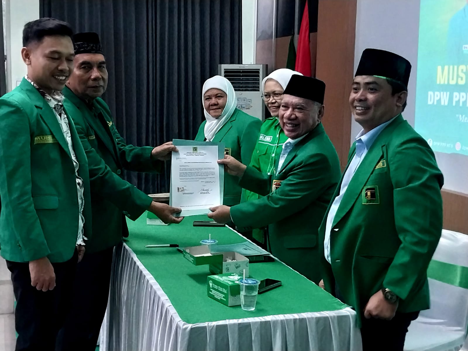 “DPW PPP NTB setelah melakukan Mukerwil dan Mukercab DPC PPP se NTB. Dengan ini memutuskan, menetapkan mendukung dan memenangkan bapak H Muhammad Murdiono sebagai Ketua Umum DPP PPP periode 2025-2030,” ucap Sekretaris DPW PPP NTB, H Mohammad Akri membacakan keputusan Mukerwil.