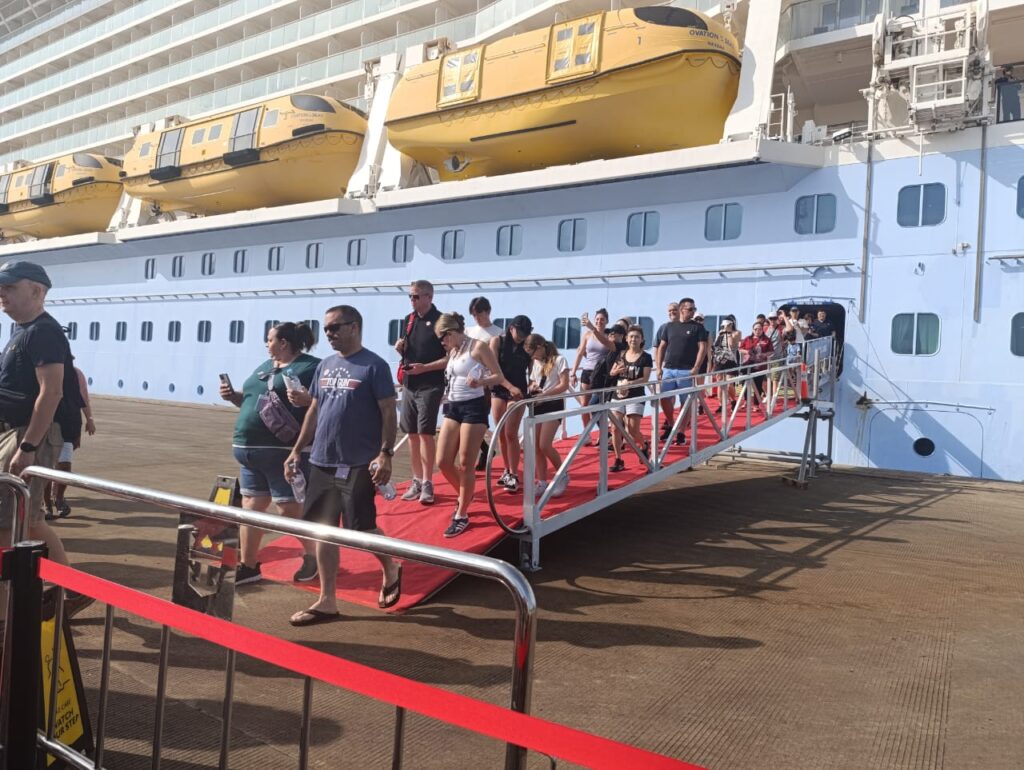 Mataram – Kapal pesiar mewah Ovation of the Seas milik Royal Caribbean untuk pertama kalinya sandar di Pelabuhan Gili Mas, Lembar, Kabupaten Lombok Barat, Jumat (2/1/2026) pagi. Salah satu kapal pesiar terbesar di dunia itu membawa 4.684 wisatawan mancanegara yang akan mengunjungi sejumlah destinasi unggulan di Pulau Lombok.