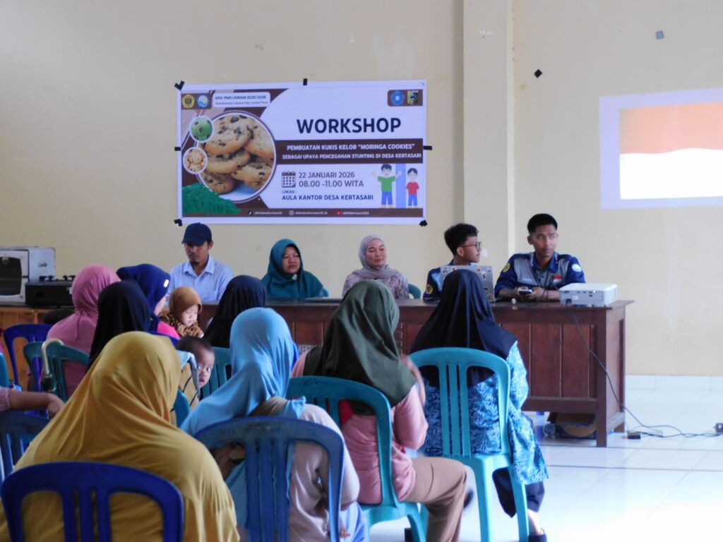 Kegiatan yang berlangsung pada Kamis, 22 Januari 2026, di Aula Kantor Desa Kertasari ini berfokus pada pemanfaatan potensi lokal melalui “Pembuatan Cookies Kelor sebagai Upaya Pencegahan Stunting”.