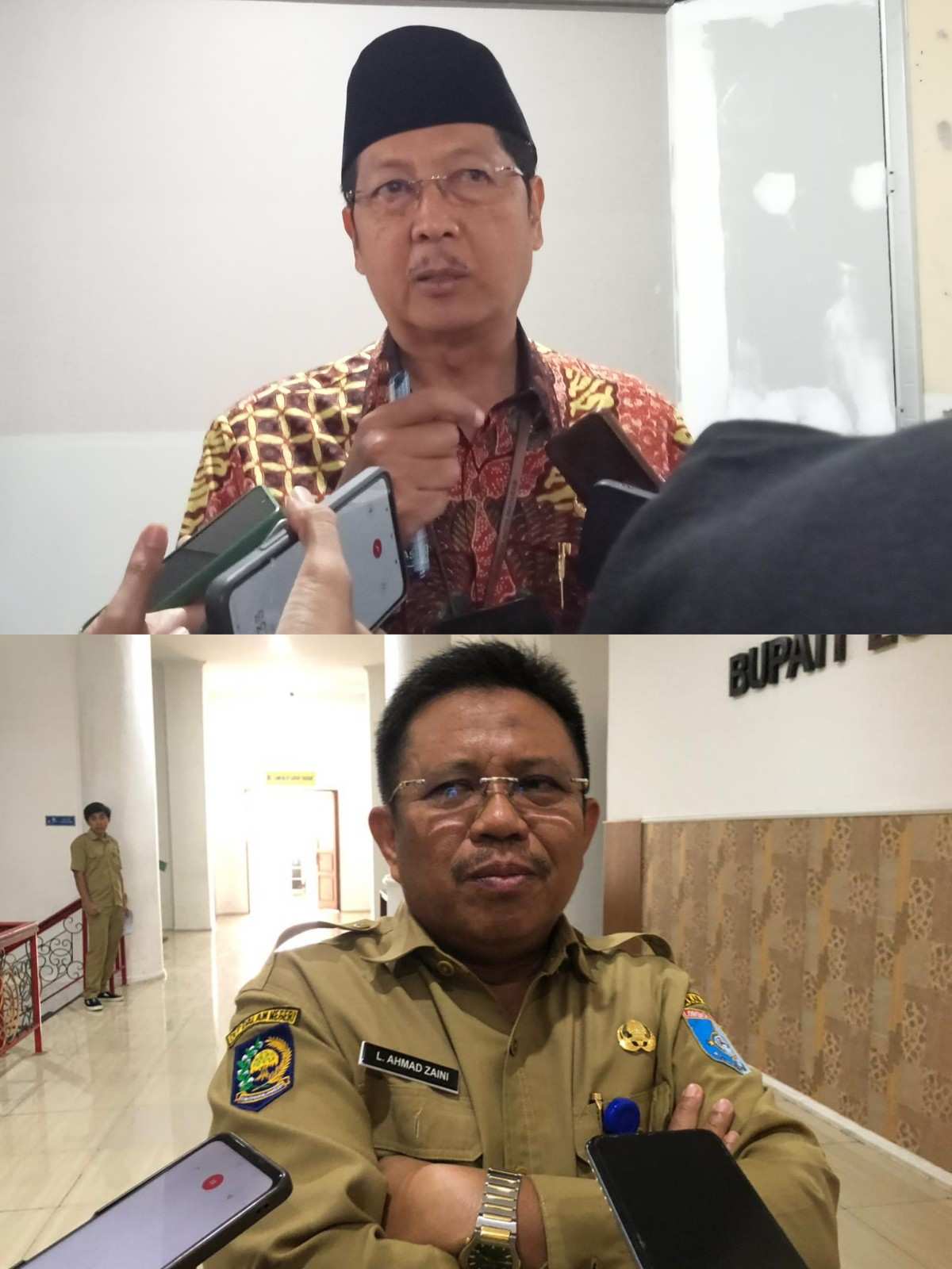 Sekretaris Daerah (Sekda) Kota Mataram, Lalu Alwan Basri dan Bupati Lombok Barat, Lalu Ahmad Zaini, saat ditemui di kantor Wali Kota Mataram dan kantor Bupati Lobar. (Dok. Buk)