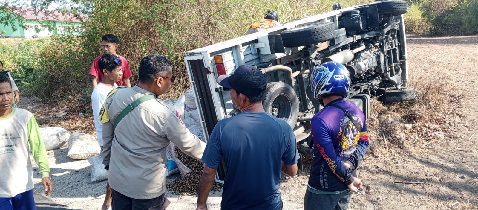 Lombok Utara – Sebuah mobil pikap bermuatan biji jambu mete mengalami kecelakaan tunggal di Jalan Bayan–Kayangan, Dusun Amor-Amor, Desa Gumantar, Kecamatan Kayangan, Kabupaten Lombok Utara, Rabu (3/9/2025) sekitar pukul 08.54 Wita.