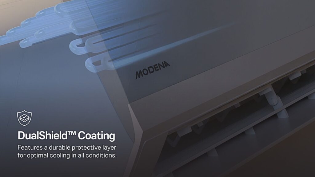 Keluhan AC yang cepat berkarat, bocor, atau tidak bertahan lama sering kali menjadi masalah utama konsumen. Menjawab hal ini, AC MODENA hadir dengan DualShield coating pada unit indoor dan outdoor yang melindungi dari kelembapan, karat, dan kebocoran. Produk ini dilengkapi anti-rust evaporator pipe serta blue fin coating untuk perlindungan ekstra.