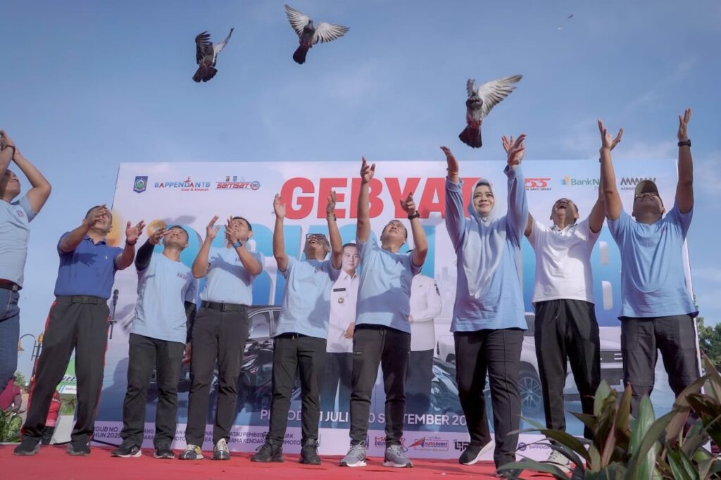 Mataram – Gubernur dan Wakil Gubernur NTB Lalu Muhamad Iqbal dan Indah Dhamayanti Putri melaunching gebyar diskon pajak kendaraan bermotor (PKB) di Teras Udayana Kota Mataram, Minggu (29/6/2025). Diskon pajak ini dibagi 6 klaster dan berlaku mulai 1 Juli hingga 30 September 2025.