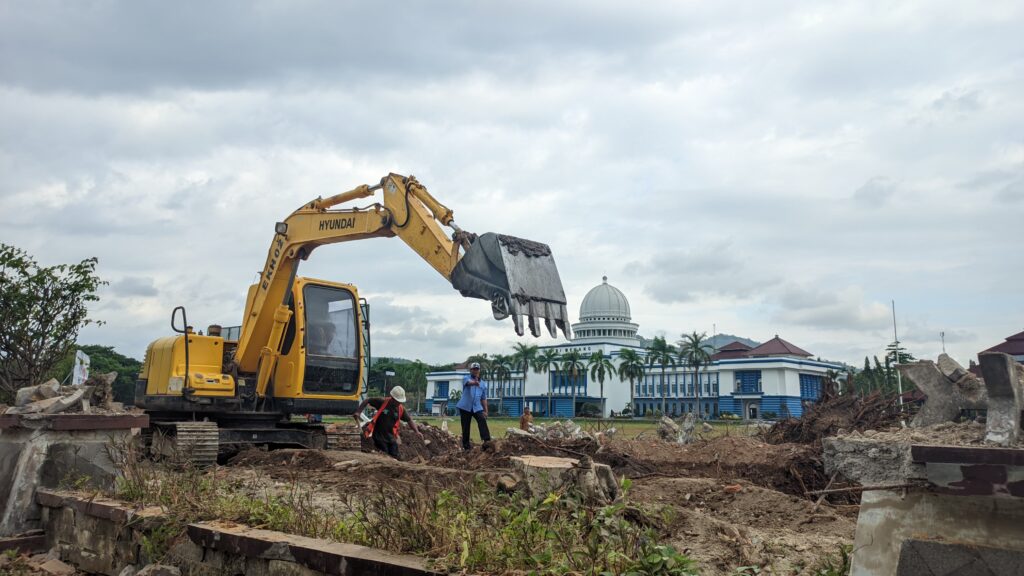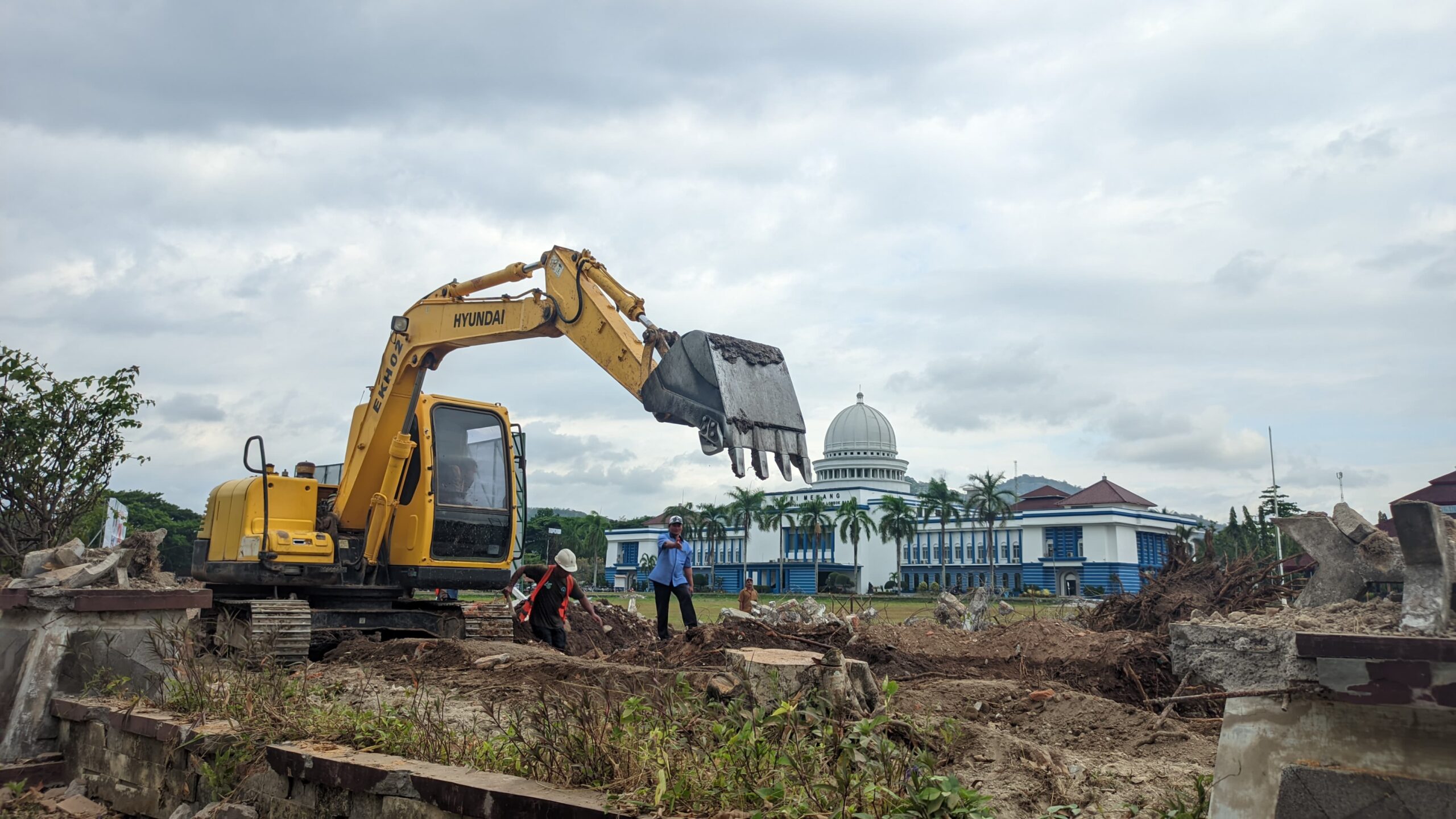 Saat ini, sejumlah pohon yang ada di lokasi pembangunan telah ditebang. Namun, Pemkab menegaskan langkah itu akan diimbangi dengan penanaman kembali.