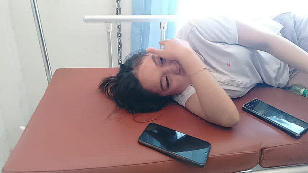 Cici Hadiastuti, siswi SMK di Lombok Timur, tampak terbaring lemas di ruang IGD Puskesmas Selong setelah mengalami muntah dan diare usai menyantap makanan dari program Makan Bergizi Gratis (MBG). (Dok:istimewa)